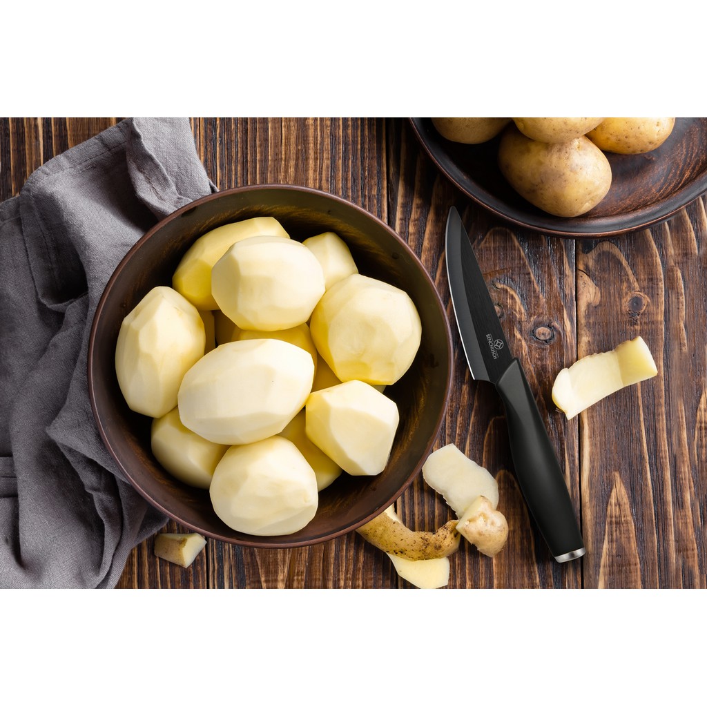 - Được làm từ ceramic (gốm) – loại vật liệu siêu cứng chỉ sau kim cương – lưỡi dao gọt đạt độ sắc bén vượt trội so với các loại dao thép thông thường khác, giúp việc cắt gọt các loại rau rủ quả thực sự dễ dàng và nhanh chóng.