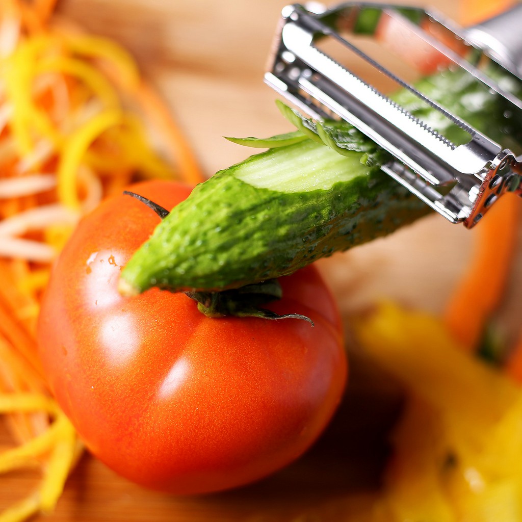- Thiết kế lưỡi kép độc đáo vừa bào vỏ vừa cắt sợi rau củ quả nhanh gấp nhiều lần so với phương pháp cắt sợi bằng dao, thớt thông thường.