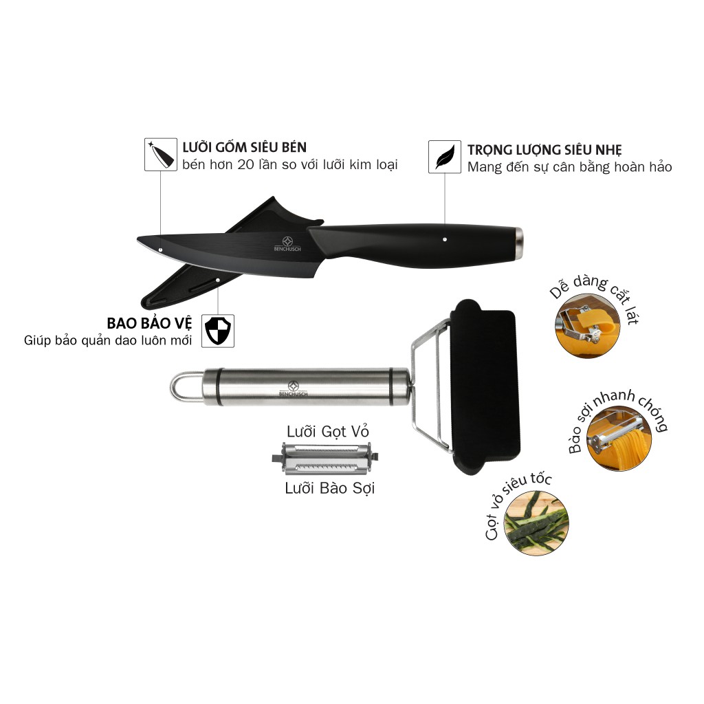 BỘ DAO BÀO RAU CỦ ĐA NĂNG VÀ DAO GỐM BENCHUSCH