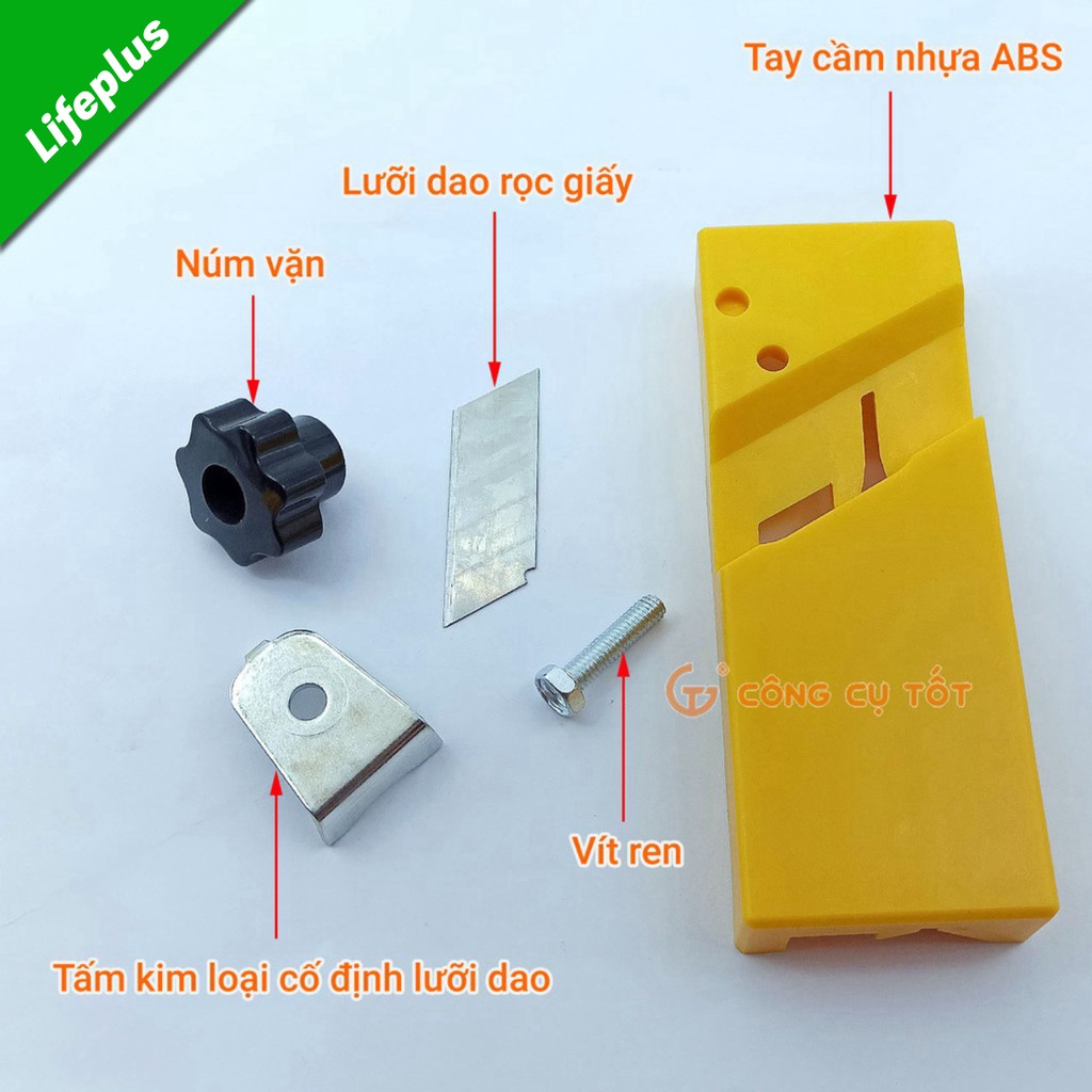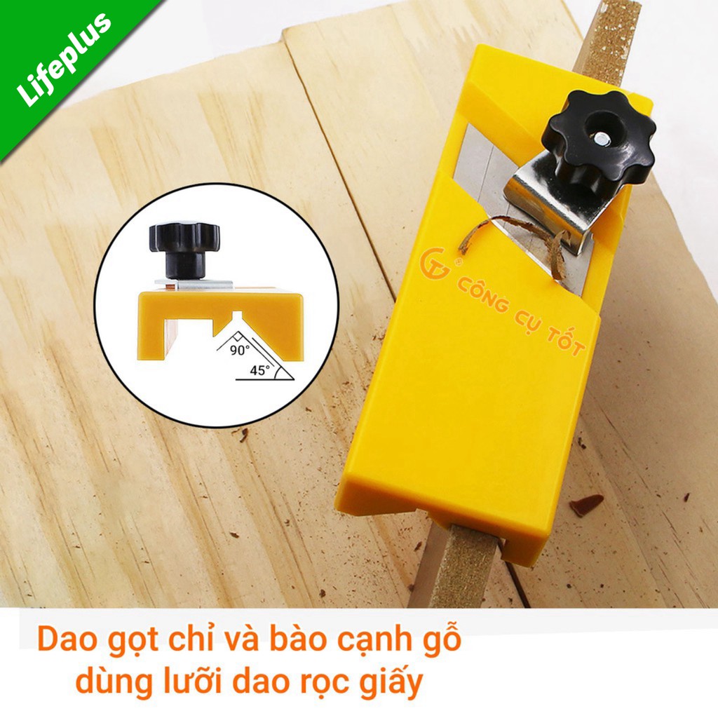 Dao gọt chỉ và bào cạnh gỗ kèm 20 lưỡi dự phòng (bẻ từ 10 lưỡi dao rọc giấy dài) giúp người thợ gọt chỉ, bào gỗ ở góc vuông và góc xiên 45° một cách hiệu quả, nhanh chóng, dễ dàng. Đây là dụng cụ chuyên dụng không thể thiếu trong quá trình gia công đồ gồ công nghiệp, gỗ veneer hay các loại gỗ dán mặt, gỗ phủ mặt,…Làm từ nhựa cứng ABS có độ bền cao, khả năng chịu va đập và chịu lực tốt