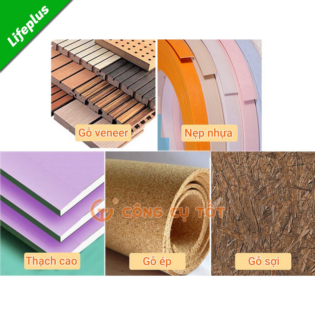 Thích hợp gia công trên các vật liệu: gỗ veneer, laminate, dây nhựa PVC, dây nhựa ABS, tấm thạch cao,…