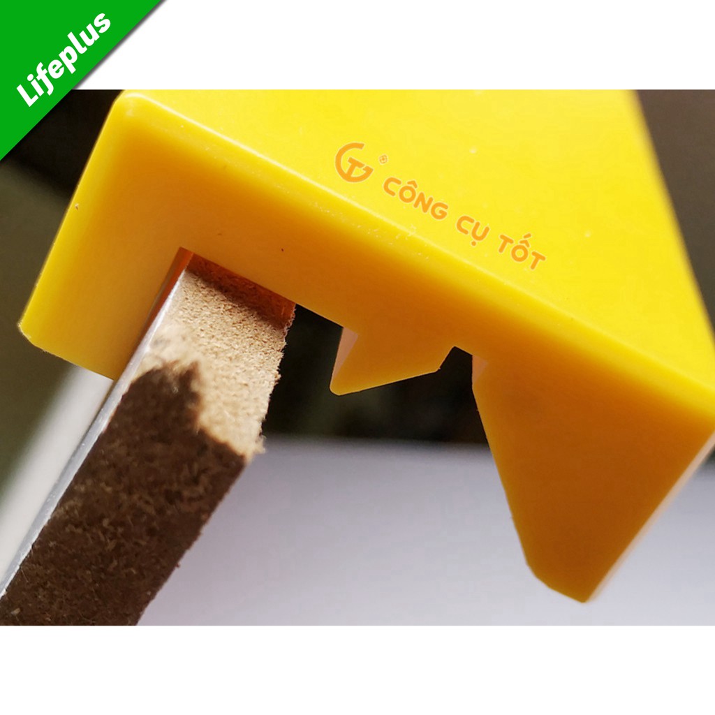 Dao gọt chỉ và bào cạnh gỗ sử dụng lưỡi dao rọc giấy giúp người thợ gọt chỉ, bào gỗ ở góc vuông và góc xiên 45° một cách hiệu quả, nhanh chóng, dễ dàng. Đây là dụng cụ chuyên dụng không thể thiếu trong quá trình gia công đồ gồ công nghiệp, gỗ veneer hay các loại gỗ dán mặt, gỗ phủ mặt,…Làm từ nhựa cứng ABS có độ bền cao, khả năng chịu va đập và chịu lực tốt