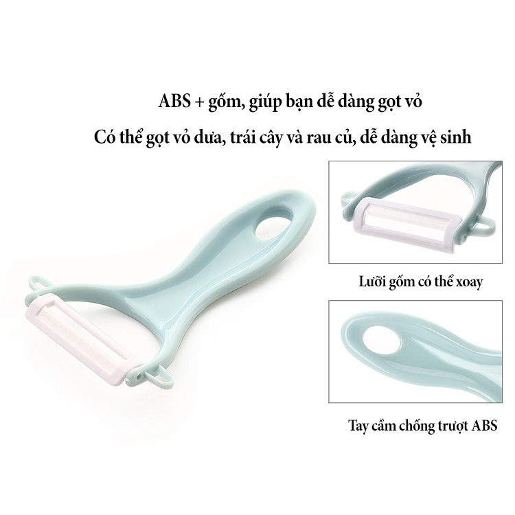 Mô tả sản phẩm:Lưỡi dao sứ xoay dễ dàng gọt vỏ.