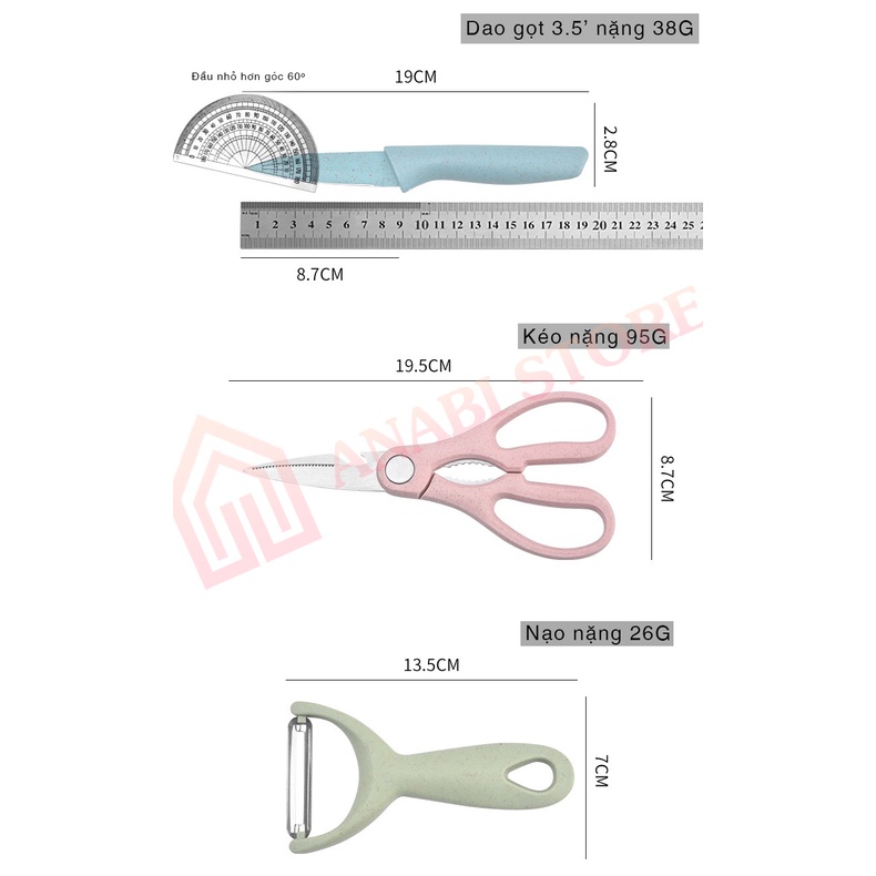 ✔️Set dao kéo 6 món với màu sắc và kiểu dáng bắt mắt, tô điểm thêm không gian bếp thêm sinh động, sản phẩm bằng lúa mạch thâm thiện với môi trường, an toàn tuyệt đối, lưỡi dao được làm bằng hợp kim thép không gỉ, không bị ảnh hưởng bới yếu tố môi trường, cũng như sự ăn mòm của hoá chất tẩy rửa. lưỡi dao cực kỳ sắc bén.
