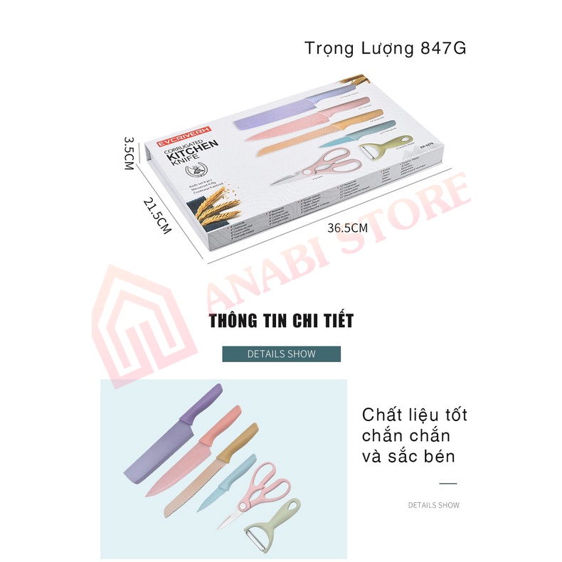 Bộ Dao Kéo 6 Món Lúa Mạch Anabi - Có Hộp Đựng Cao Cấp - Siêu Bền, Sắc Bén, Chất Lượng Cao* CAM KẾT TỪ SHOP*