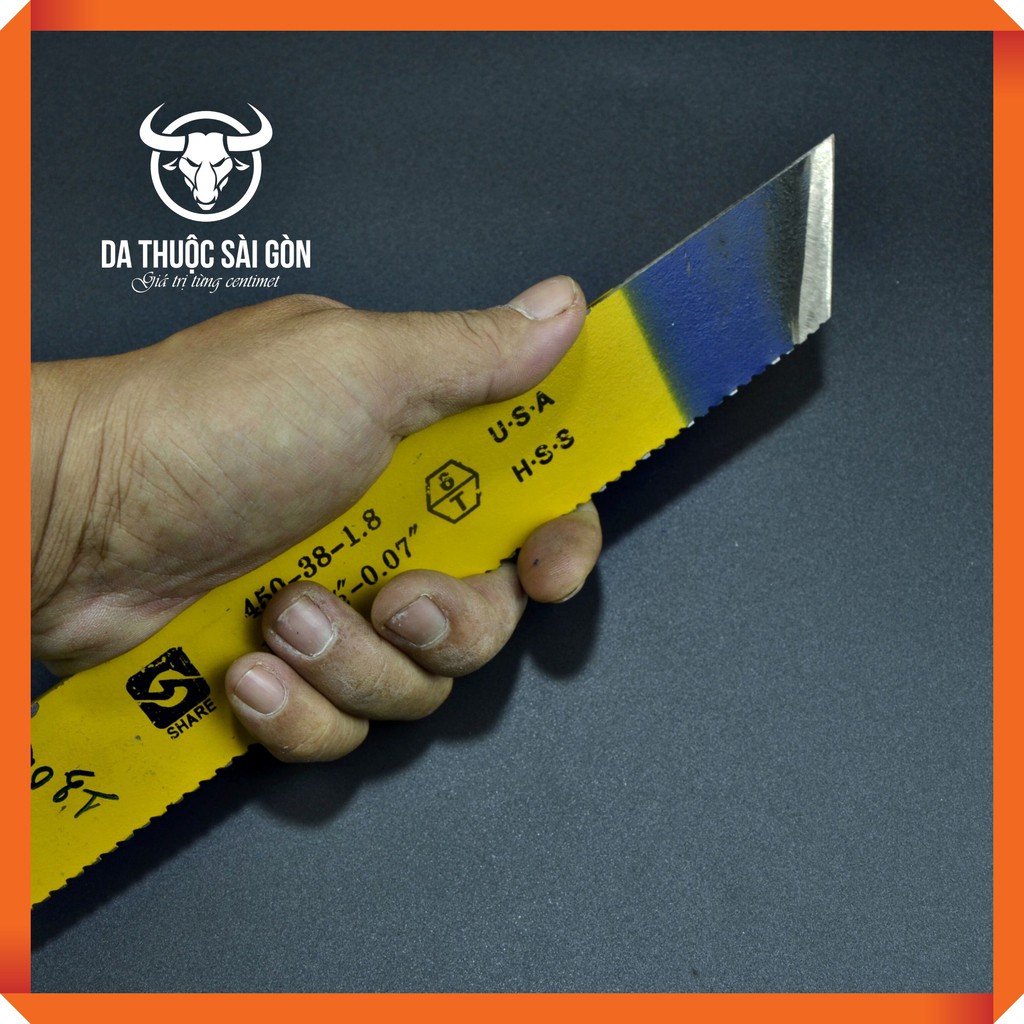 Mua dụng cụ làm đồ da cao cấp với sản phẩm này bạn sẽ còn tiện lợi hơn rất nhiều bởi chất liệu là thép lưỡi cưa đảm bảo lạng mỏng độ dày của da thuộc để sản phẩm có độ mỏng đẹp và tinh tế hơn.