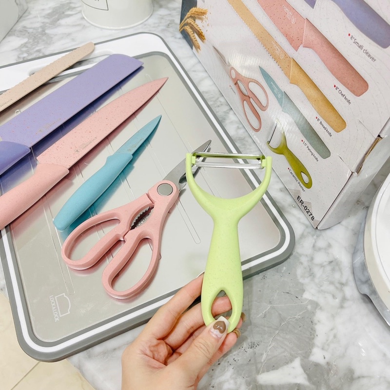 Bộ Dao Lúa Mạch Kháng Khuẩn 6 Món Hộp Đựng Cao Cấp, Set Dao 6 Chi Tiết Lúa Mạch Dụng Cụ Nhà Bếp