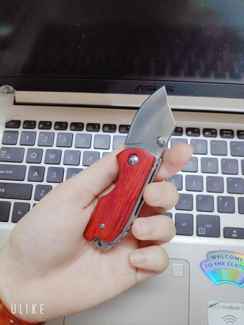 Dao mini nhỏ gọn bỏ túi- khui thùng giấy.Cán gỗ- thép không gỉ.