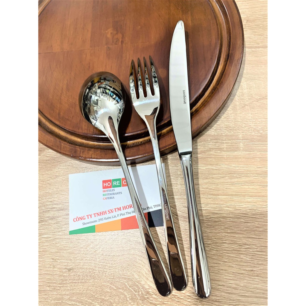 Giới thiệu bộ dao muỗng nĩa 3 món cao cấp đuôi tròn trơn, miệng bầu tròn, cán tròn giọt nước, sáng bóng, thanh mảnh,inox 304 -18/10