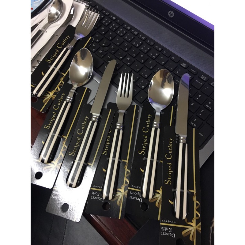Dao ăn dài 21cm, muỗng ăn dài 19cm, Nĩa ăn dài 19cm)