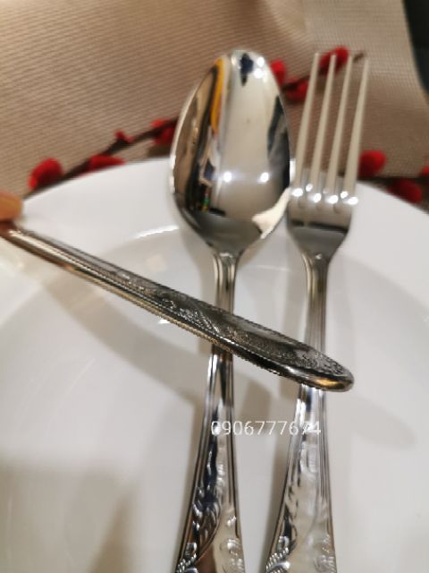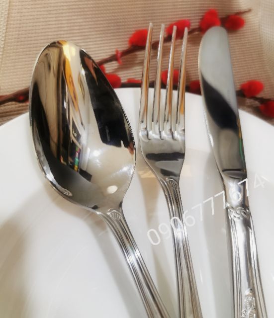 - Bộ dao muỗng nĩa làm bằng chất liệu inox 304 (tiêu chuẩn 18/10) không bị rỉ sét, mang phong cách cổ điển phù hợp với bàn tiệc kiểu tây âu, hoặc bàn ăn gia đình sang trọng.