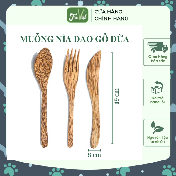Dao- Muỗng- Nĩa gỗ dừa (Bộ dao muỗng nĩa gỗ dừa)