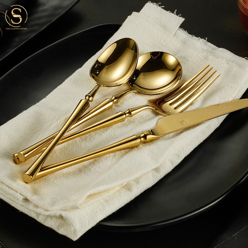 CỬA HÀNG NỘI THẤT CAO CẤP SAM GOLDEN HOME DECORBộ Dao Muỗng Nĩa Inox Cao Cấp Không Phai Màu Vàng Gold Cutlery Thượng Lưu - Sam