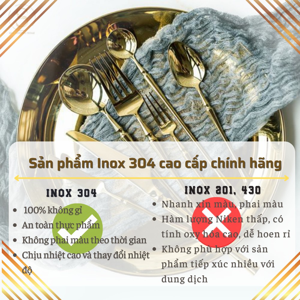 __ Bộ Dao Muỗng Nĩa Inox Cao Cấp Không Phai Màu Vàng Gold Cutlery Thượng Lưu - Sam