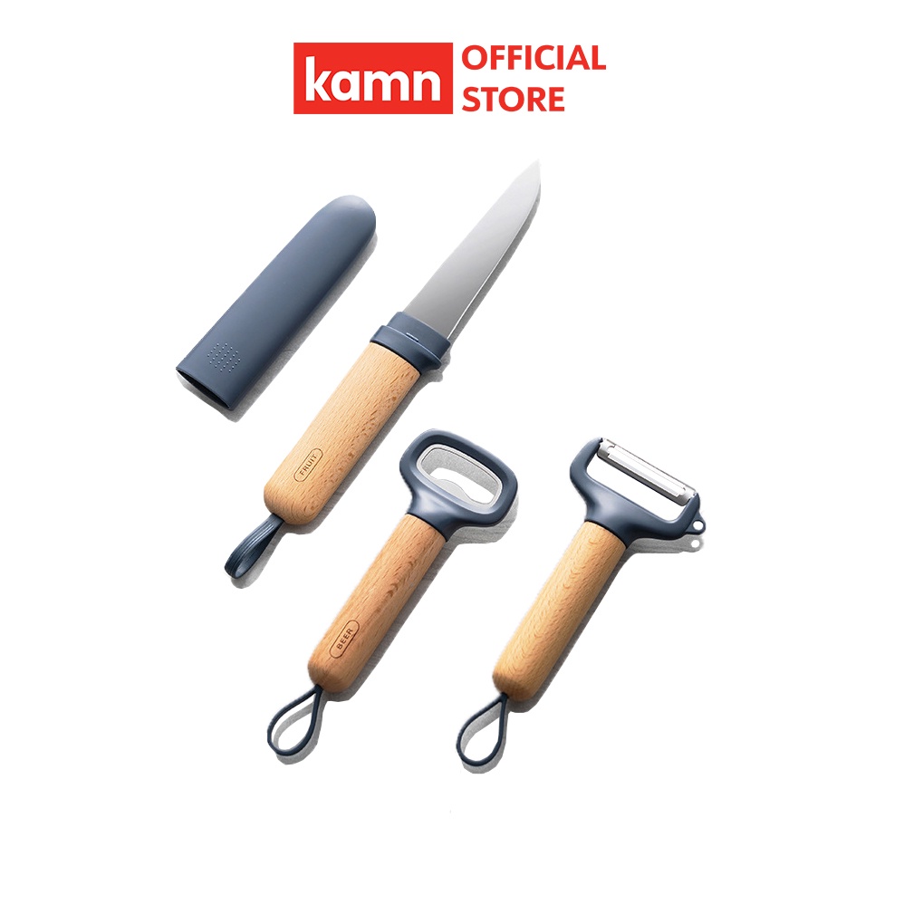 Bộ dao, nạo, mở bia nhập khẩu cao cấp Kamn cán gỗ thời trang