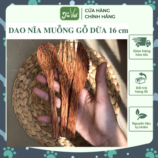Giới thiệu Dao Nĩa Muỗng bằng gỗ dừa 16 cm