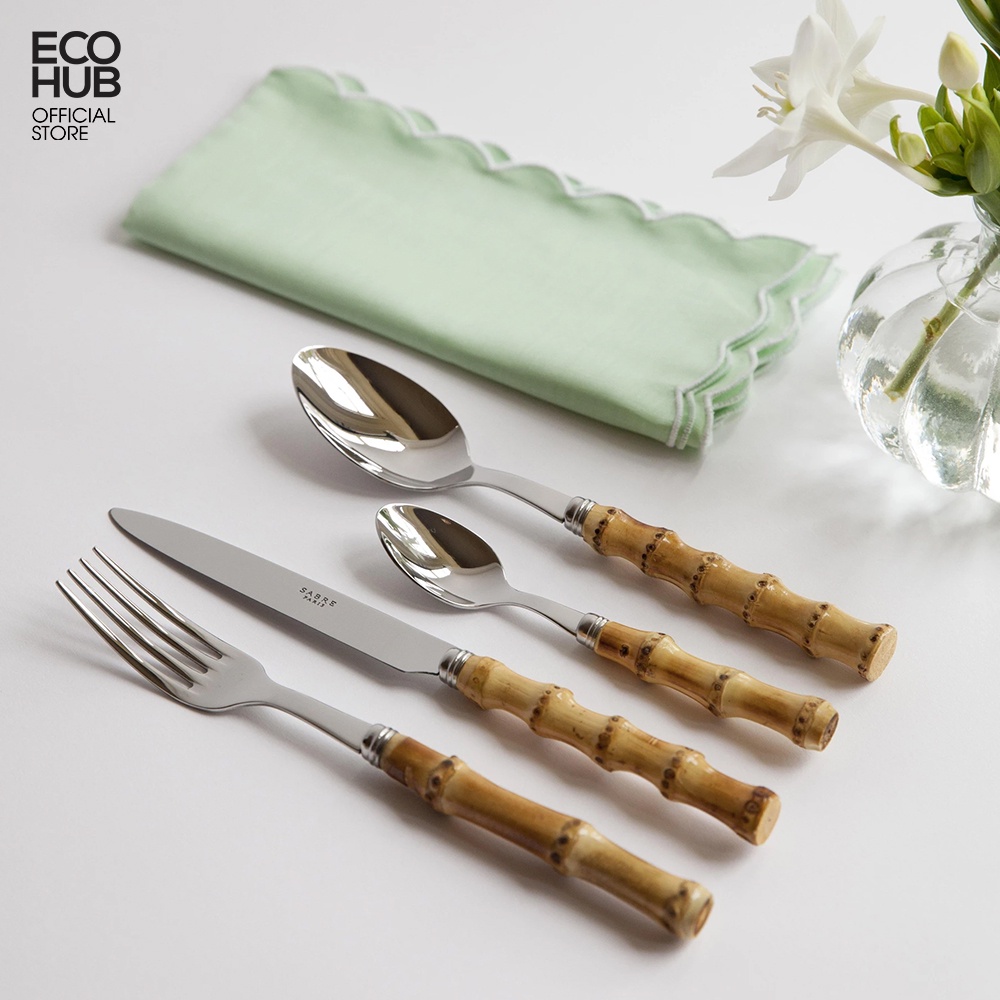 Nhà cửa & Đời sống > Bộ đồ bàn ăn > Bộ dao kéo || Bộ Dao, Nĩa, Muỗng ECOHUB, cán Tre, màu bạc sang trọng, Sử dụng cho nhà hàng cao cấp / cá nhânCòn hàng