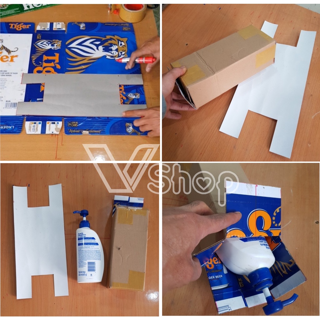 Vật liệu dùng để làm hộp, các bạn có thể sử dụng các loại thùng giấy cũ ( thùng bia, nước suối, mì gói … )