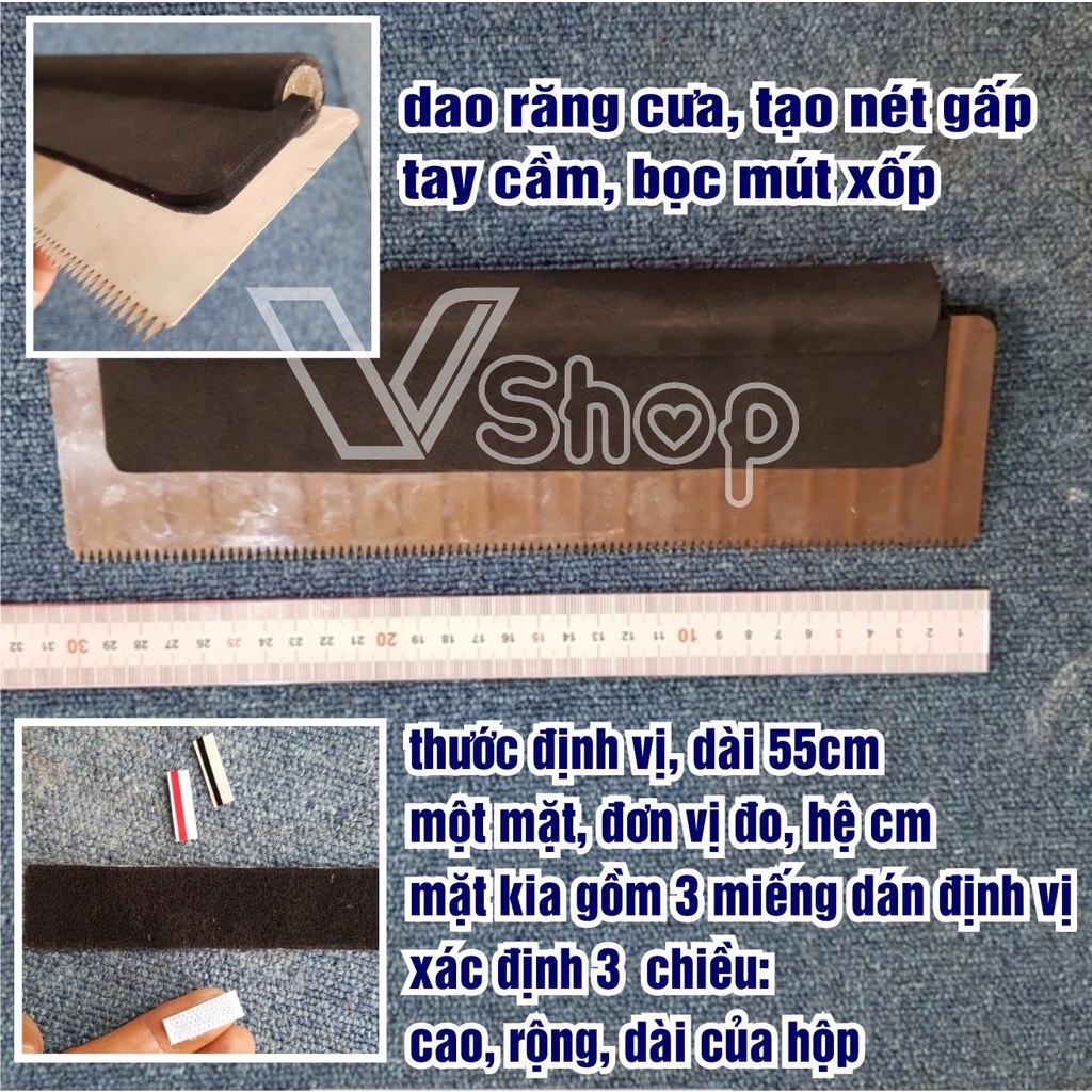 Giới thiệu Dao răng cưa, thước định vị. dụng cụ tự làm hộp giấy carton, gói hàng.