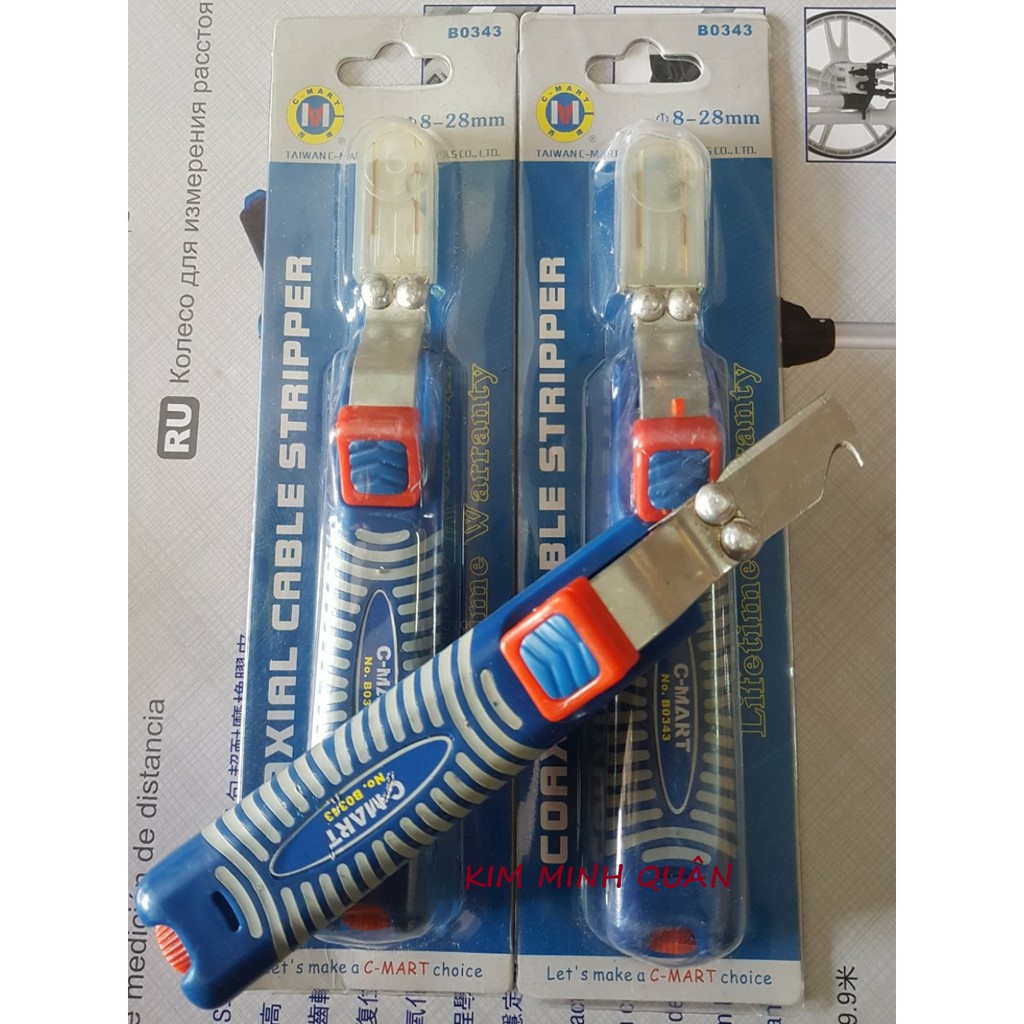 Dao thiết kế dạng kẹp móc vào dây cáp , ở giưa có lưỡi dao thép có thể tăng giảm chiều dài lưỡi dao . khi đua dây cáp vào kẹp cố định bạn chi cần xoay con dao là đứt võ cáp ( chinh lưỡi dao thích hợp với kích thước vỏ dây để tránh phạm vao lỗi )