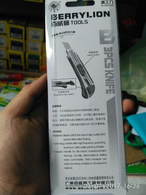 Sãn phẩm dao rọc giấy Berry Lion Loại 1 với thiết kế nhựa bọc thép không gỉ chống rỉ sét và va đập mạnh, bền bỉ với thời gian. Có 3 dao thép bản cứng sẵn trong dao.- Thiết kế khoa học khi thay lưỡi dao nên bạn nào mới sử dụng cần nghiên cứu kỹ tránh làm không đúng thao tác, giảm tuổi thọ sãn phẩm