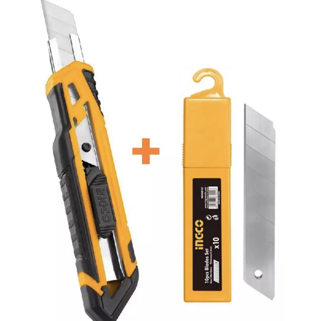 Nhà cửa & Đời sống > Dụng cụ & Thiết bị tiện ích > Dụng cụ > Khác || Bộ dao rọc giấy và hộp 10 lưỡi dao INGCO HKNS16518 HKNSB181Còn hàng