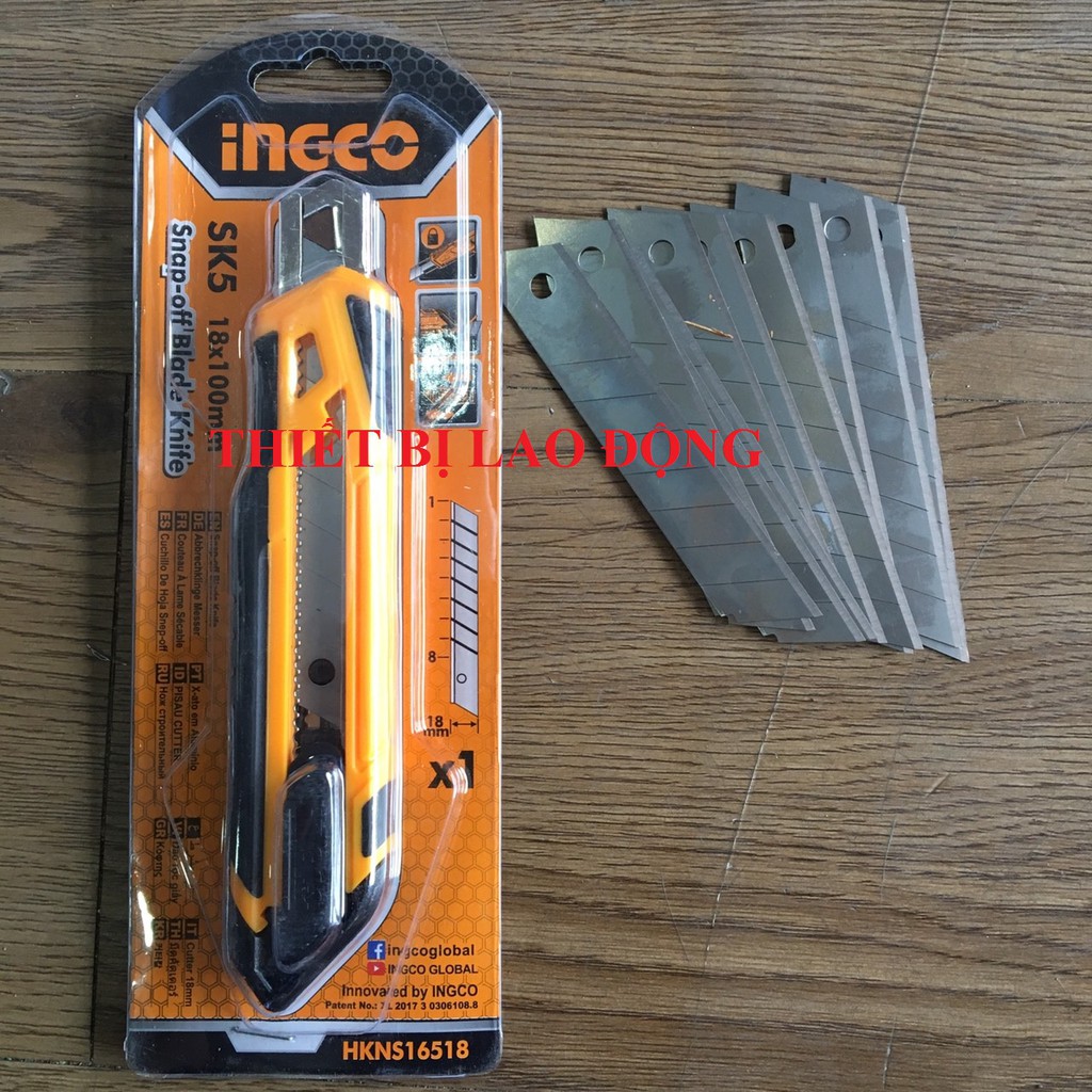 Bộ dao rọc giấy và hộp 10 lưỡi dao INGCO HKNS16518 HKNSB181Mã sản phẩm: HKNS16518 và HKNSB181