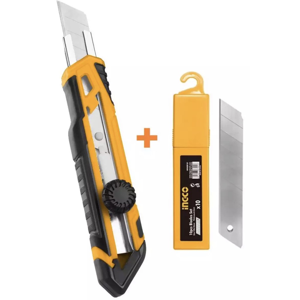 Bộ dao rọc giấy và hộp 10 lưỡi dao 18x100mm INGCO HKNS16618 HKNSB181