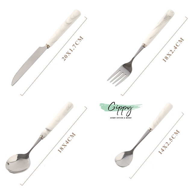 Nhà cửa & Đời sống > Bộ đồ bàn ăn > Bộ dao kéo || Bộ dao thìa dĩa bạc chuôi marble - Gippy DecorCòn hàng