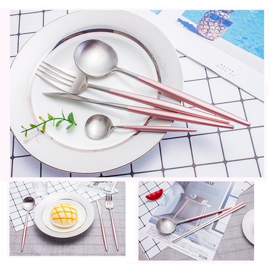 Nhà cửa & Đời sống > Bộ đồ bàn ăn > Bộ dao kéo || Bộ dao thìa dĩa inox 304 cao cấp màu bạc nhám 4 mónCòn hàng