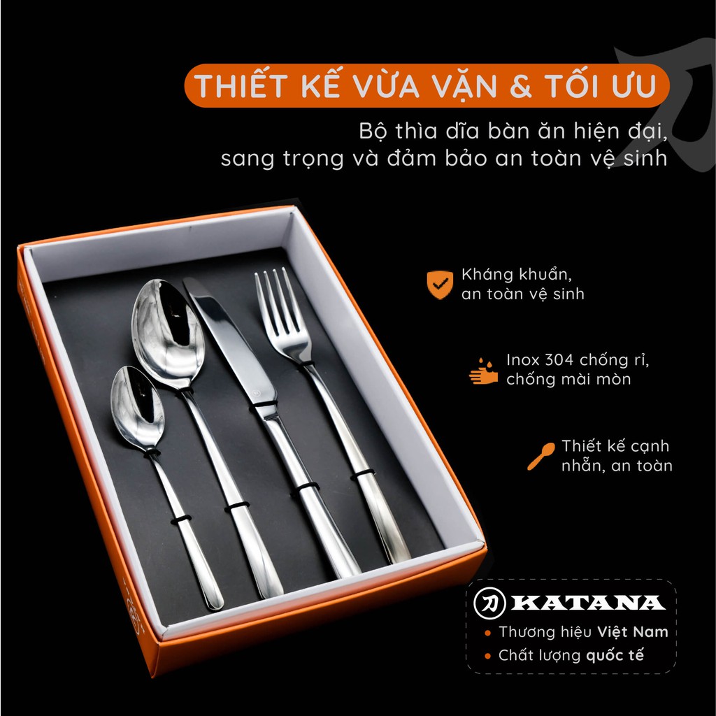 Bộ 4 chiếc thìa dĩa KATANA inox 304 sáng bóng, không gỉ KATA100