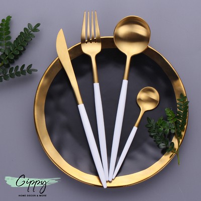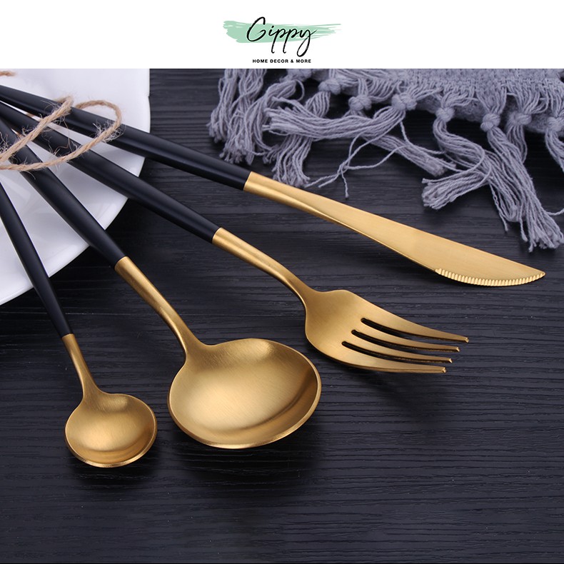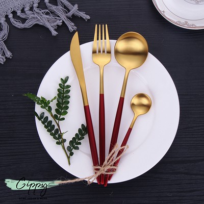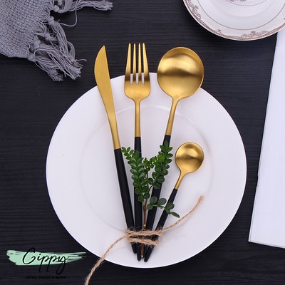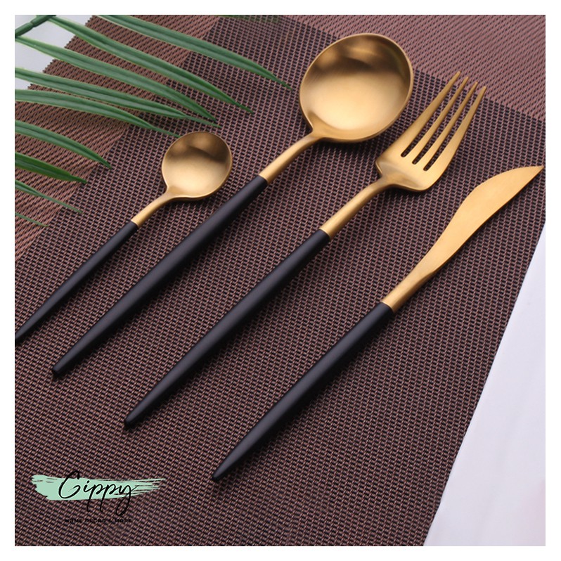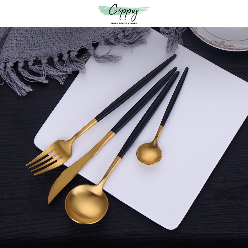 Bộ dao thìa dĩa màu gold chuôi đen/ hồng/ trắng/ đỏ phong cách Bắc Âu - Gippy Decor