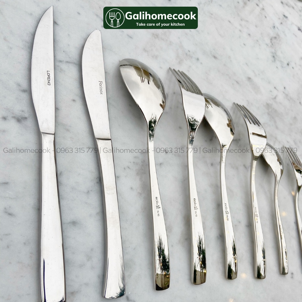 Thông tin sản phẩmGaliHomecook chuyên cung cấp và phân phối Dụng cụ, đồ dùng nhà bếp, phụ kiện bàn ăn bao gồm: "Dao bít tết, Dĩa (nĩa) , Thìa, muỗng, Thìa cà phê và Dĩa (nĩa) trái cây cao cấp inox 304 tinh tế và sang trọng, mang phong cách châu âu của các hàng: SOLA, FORINOX, LORENA, Fontignac, ZWilling,....