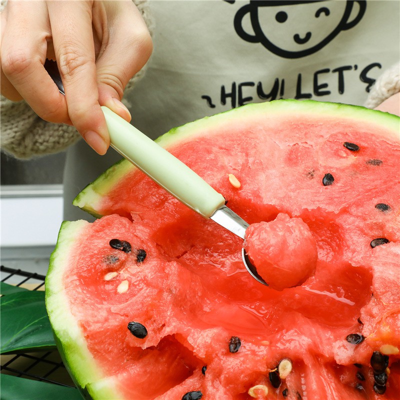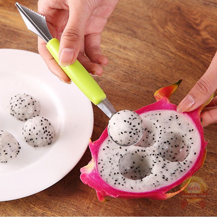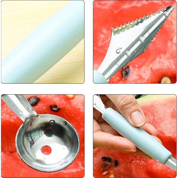 Giới thiệu Dao Thìa muỗng inox 2 đầu khắc tỉa nạo tạo hình hoa quả múc dưa hấu trái cây đầu muôi có lỗ tạo viên