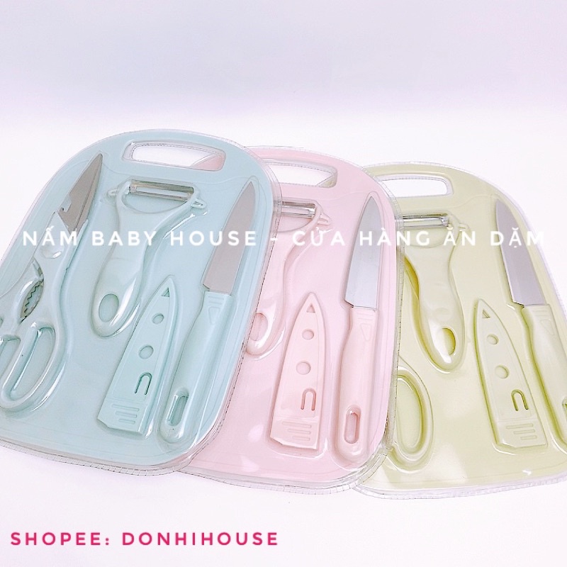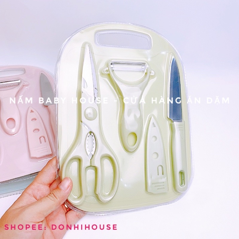 Bộ dao thớt nhựa để chế biến cho bé ăn dặm