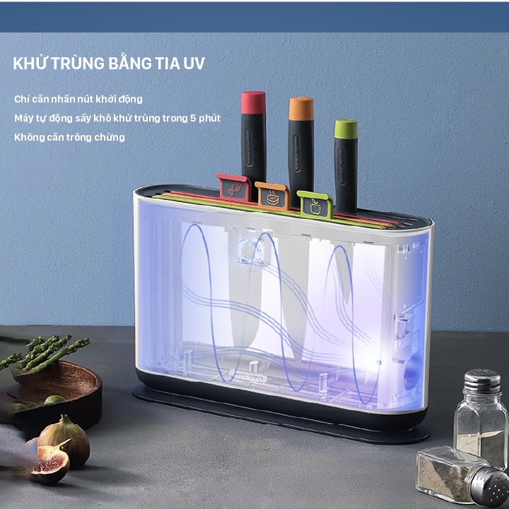 👉Khử khuẩn UV lên tới 99,9%: Sử dụng đơn giản chỉ bằng 01 nút bấm, máy sẽ hoạt động trong chu kỳ 05 phút, máy sẽ tự động ngắt sau khi khử khuẩn xong. Sau khu sử dụng dao và thớt, chỉ cần để dao thớt vào máy và bấm nút, máy sẽ hoạt động tự động.