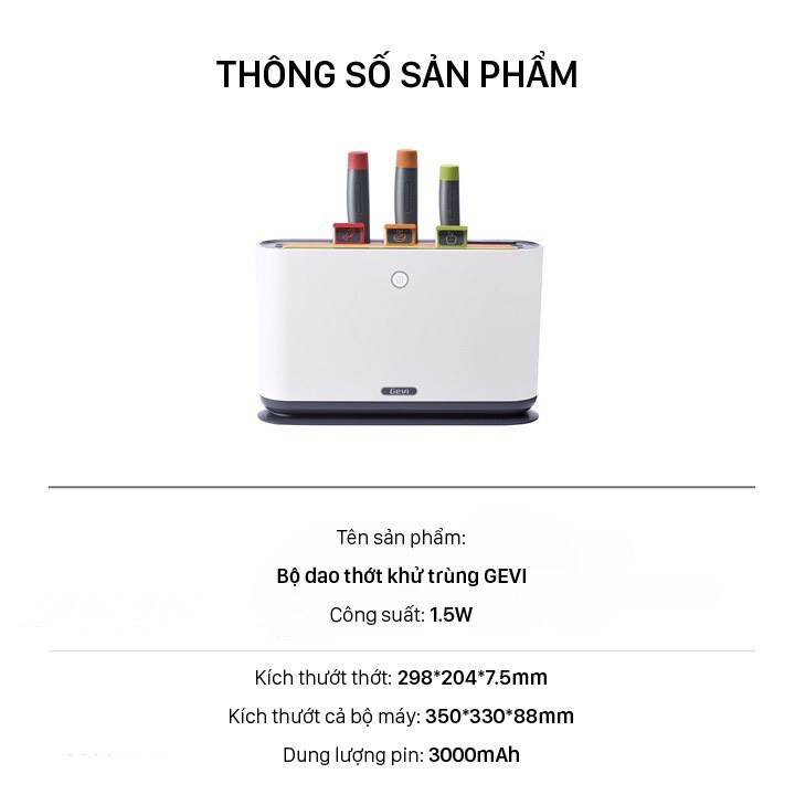 Bộ Dao Thớt Kháng Khuẩn, Khử Trùng Bằng Tia UV Gevi, Bảo Hành 12 Tháng☑️ Thông tin nổi bật của sản phẩm