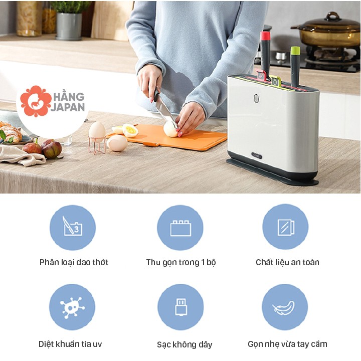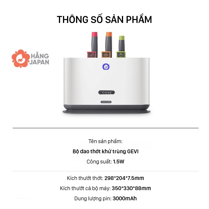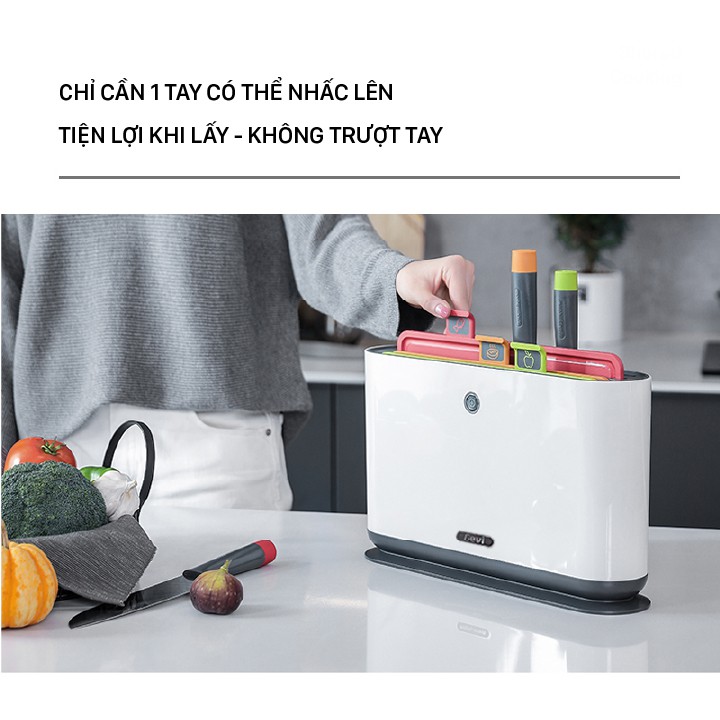 Bộ dao thớt kháng khuẩn Gevi - Khử trùng bằng tia UV, pin sạc dự phòng tặng kèm - BH 12 THÁNG🧨🧨 ĐẶC ĐIỂM NỔI BẬT: Bộ dao thớt kháng khuẩn Gevi