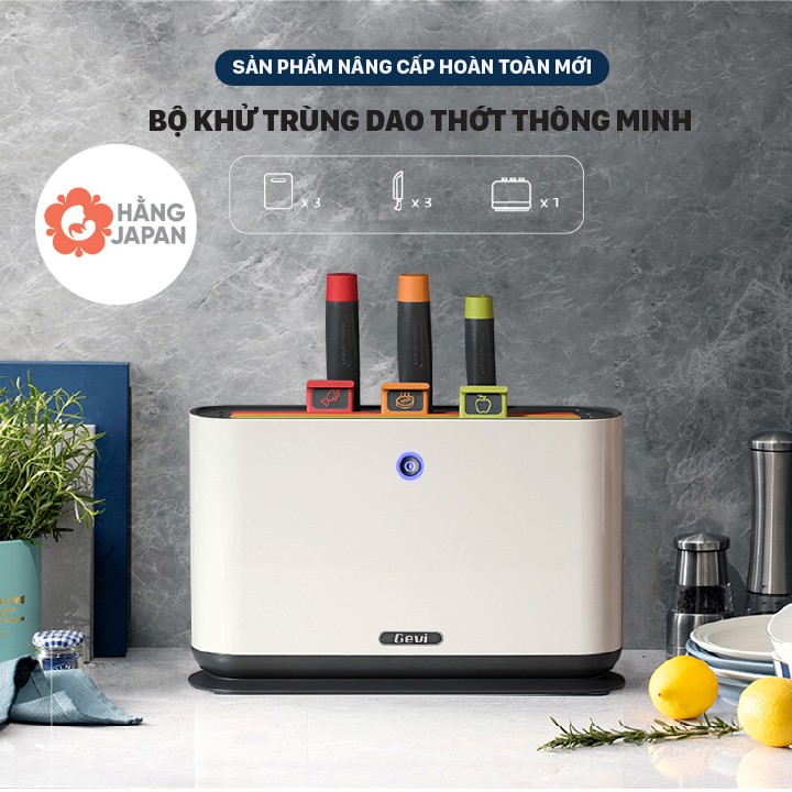 Giới thiệu Bộ dao thớt kháng khuẩn Gevi - Khử trùng bằng tia UV, pin sạc dự phòng tặng kèm - BH 12 THÁNG