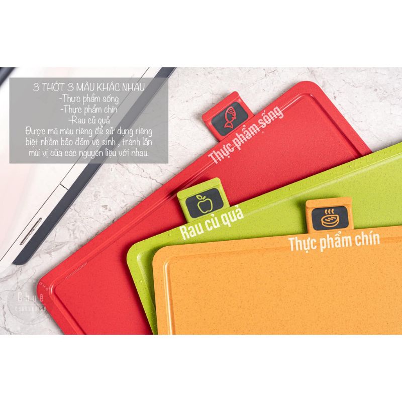 Bộ sản phẩm bao gồm: 03 thớt và 03 dao thiết kế riêng biệt, phân loại bằng màu sắc thuận tiện sử dụng. Bảo vệ chế độ ăn, uống lành mạnh cho gia đình bạn.