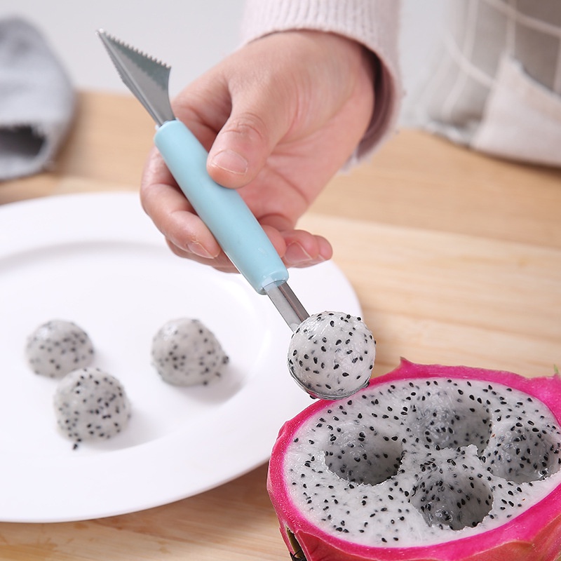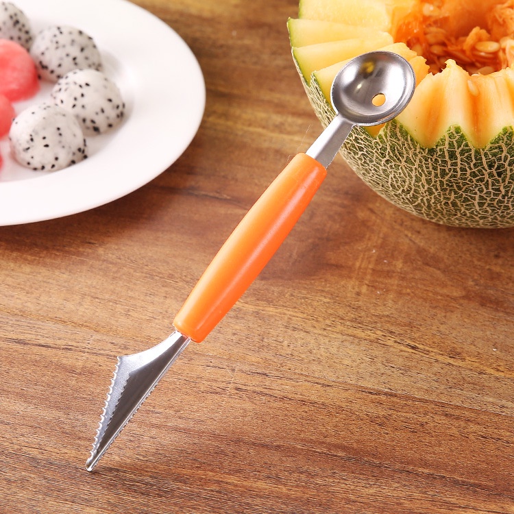 Dao tỉa hoa quả 2 đầu inox /cắt tỉa trang trí hoa quả đa năngDụng cụ cắt tỉa hoa quả được thiết kế gồm 2 đầu, một đầu dùng để múc các loại quả có ruột mềm, một đầu để tỉa rau củ, hoa quả, cho bạn gái thể hiện sự khéo léo và cắt tỉa nhiều dĩa hoa quả bắt mắt cho cả gia đình.