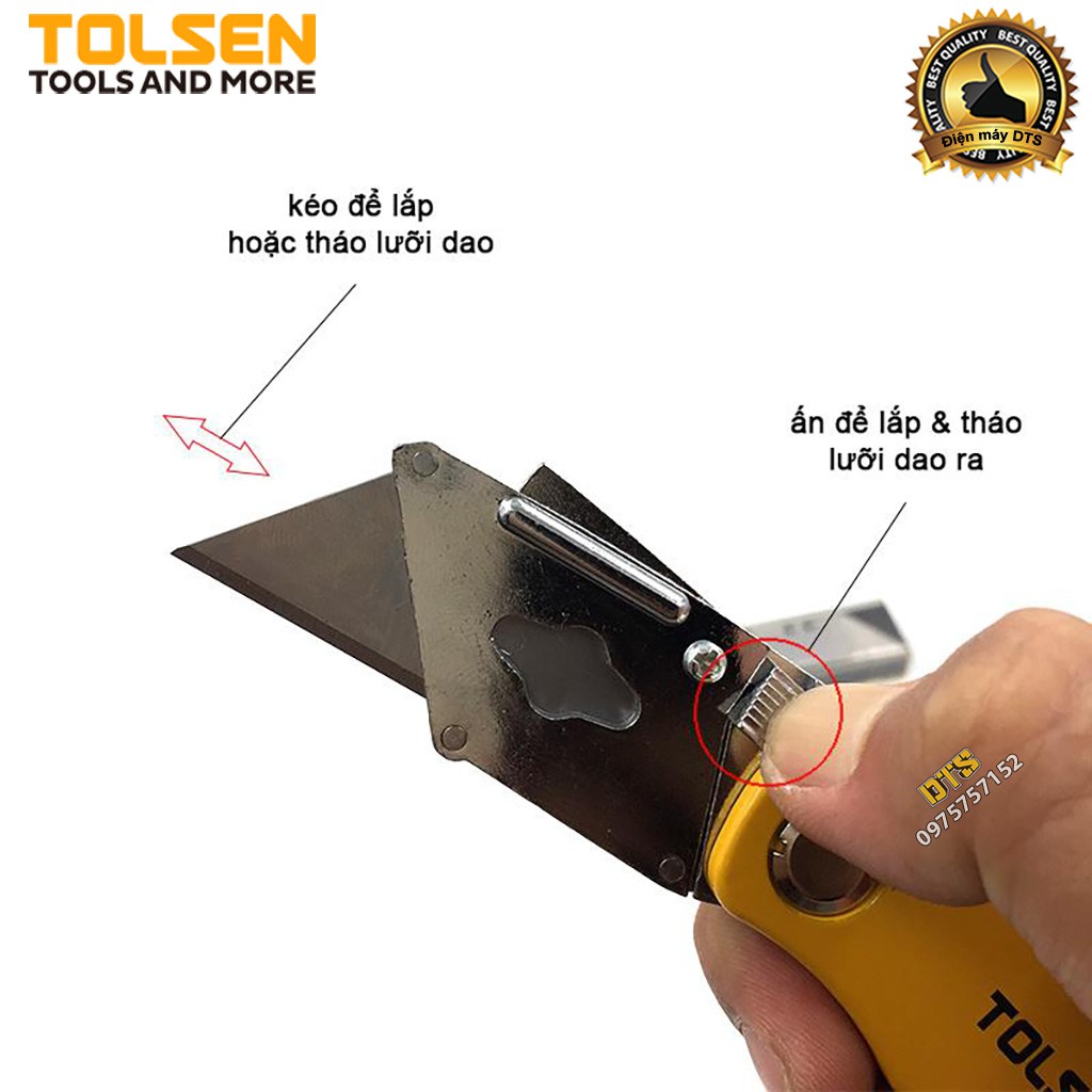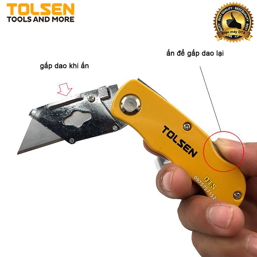 Nhà cửa & Đời sống > Dụng cụ & Thiết bị tiện ích > Dụng cụ > Khác || Dao trổ - Dao rọc giấy gấp gọn TOLSEN vỏ nhôm, thay lưỡi dao siêu nhanh (Kèm 5 lưỡi dao Nhật SK5) - Tiêu chuẩn Châu ÂuCòn hàng