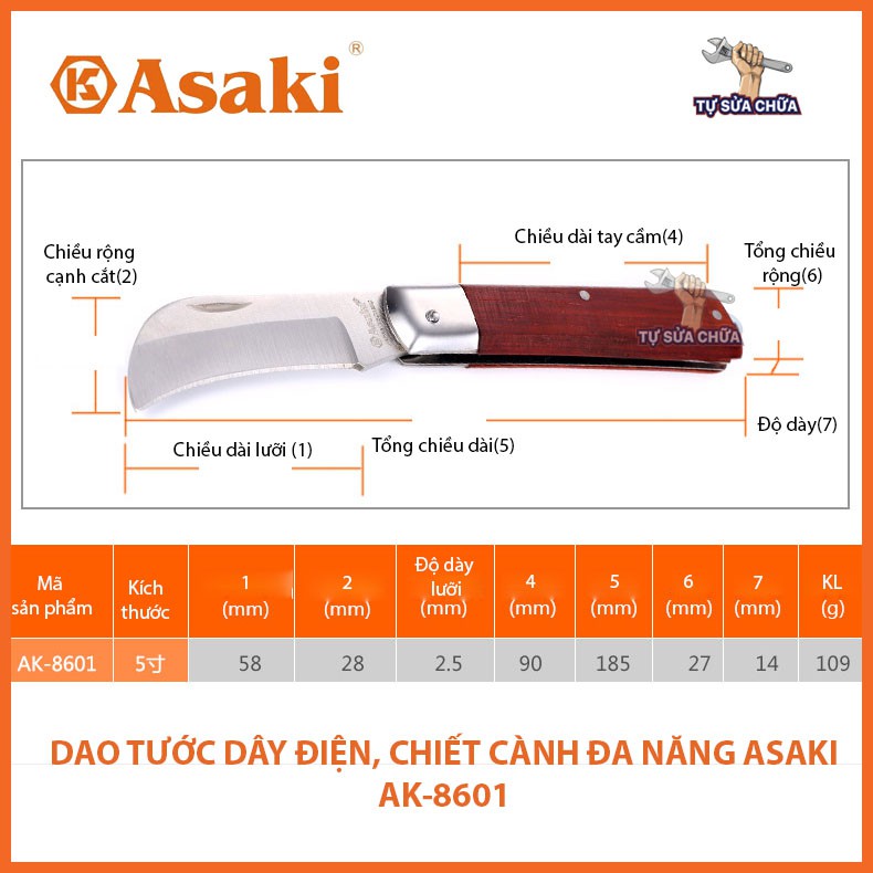 Giới thiệu Dao tuốt dây điện, dao chiết cành lưỡi cong, lưỡi thẳng 5" đa năng chính hãng Asaki AK-8600, AK-8601