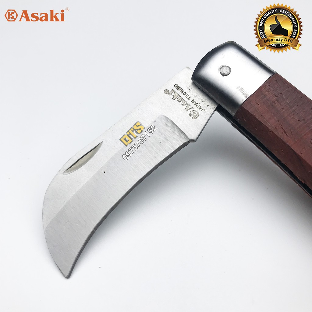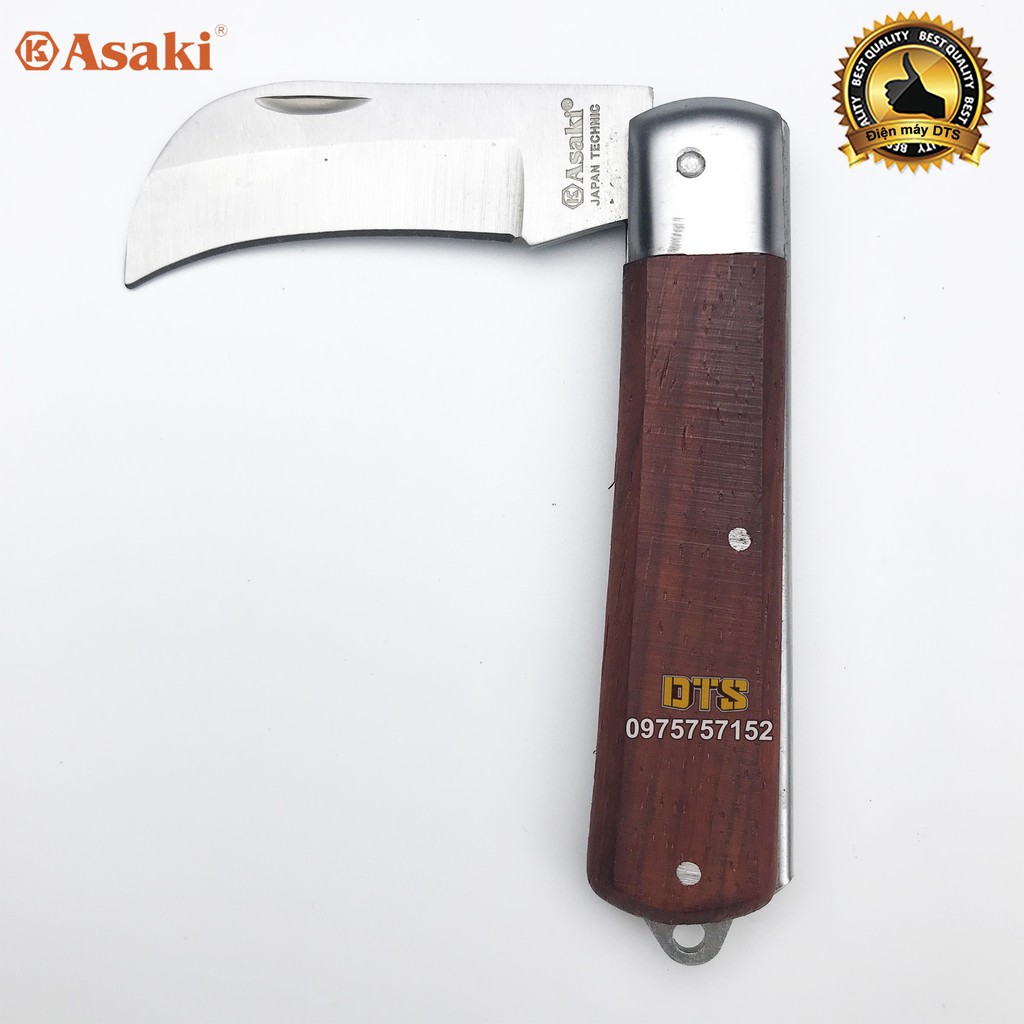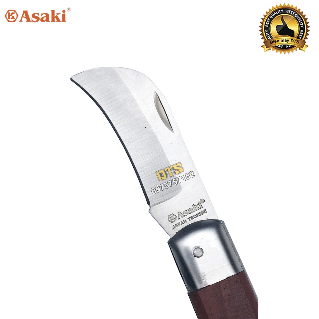 Dao tuốt dây điện lưỡi cong Asaki AK-8601, dao rọc cáp, gọt vỏ dây điện, thép không gỉ, cán dao ốp gỗ đỏ