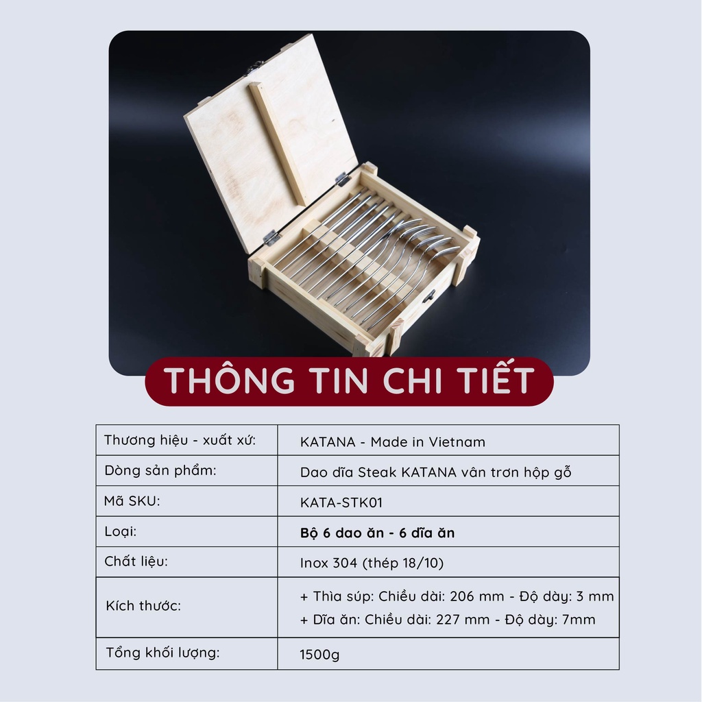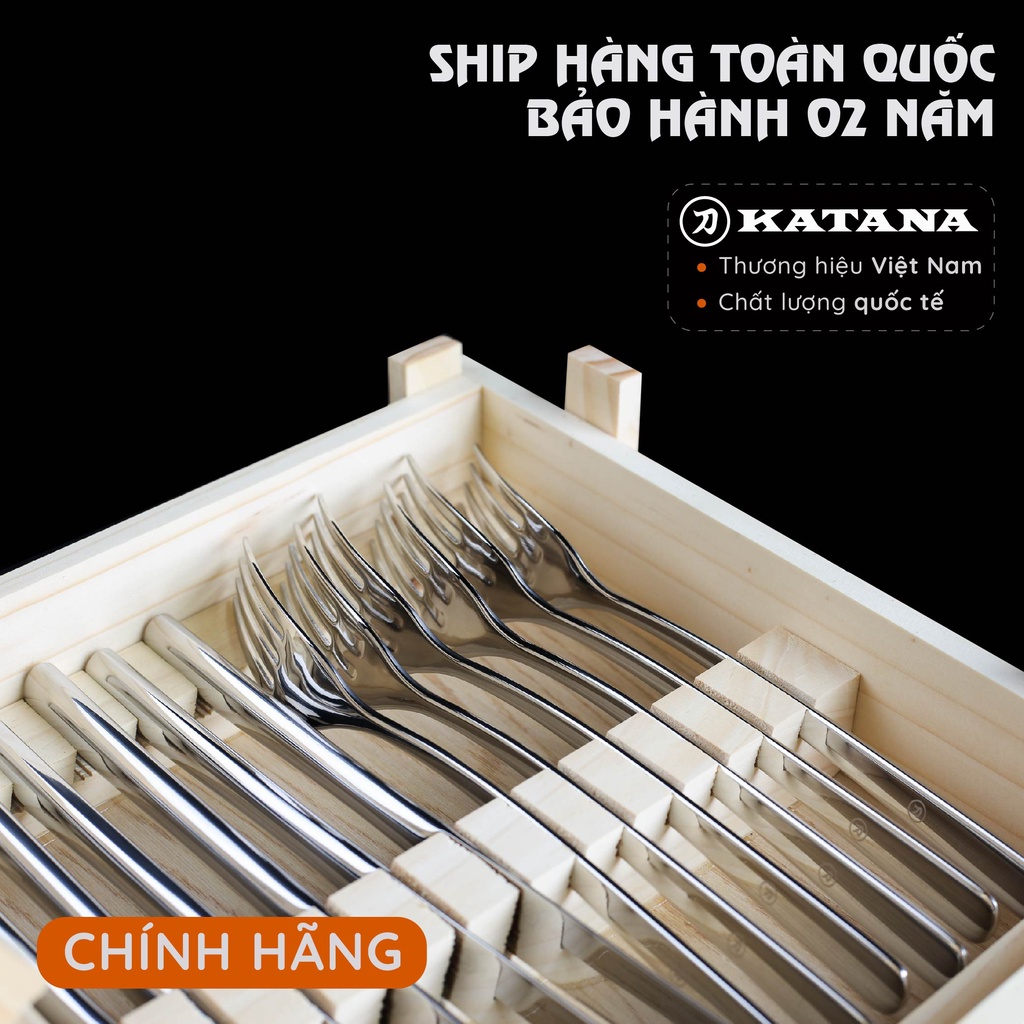 Nhà cửa & Đời sống > Bộ đồ bàn ăn > Dĩa || Bộ dao và dĩa beefsteak inox KATANA hộp gỗ KATASTK01 12 mónCòn hàng