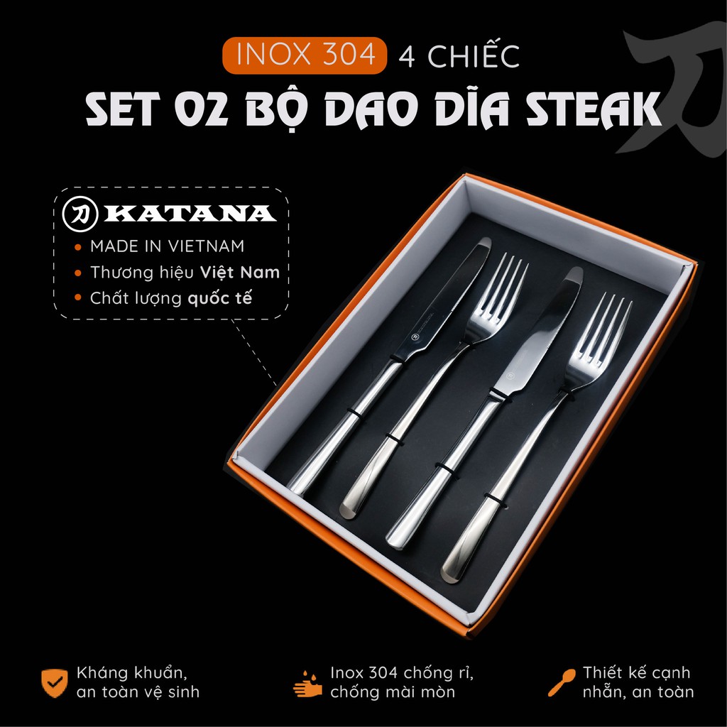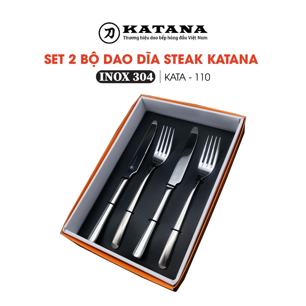 Bộ 4 chiếc dao dĩa KATANA ăn STeak inox 304 sáng bóng, không gỉ KATA110