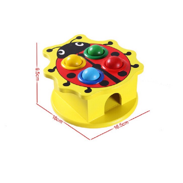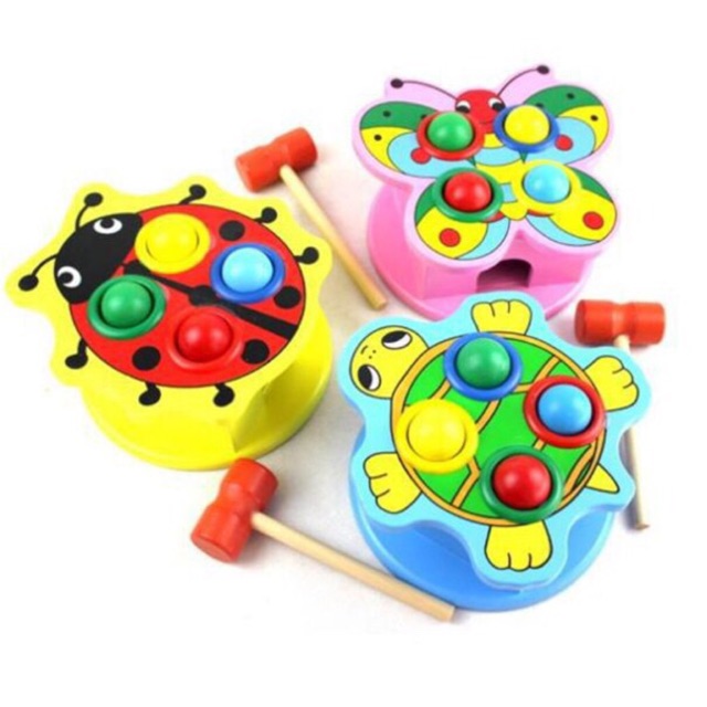 Sản phầm có 3 hình ngẫu nhiên: ong, rùa và bọ, gồm 1 búa, 1 hộp đập có 4 lỗ và 4 bóng.