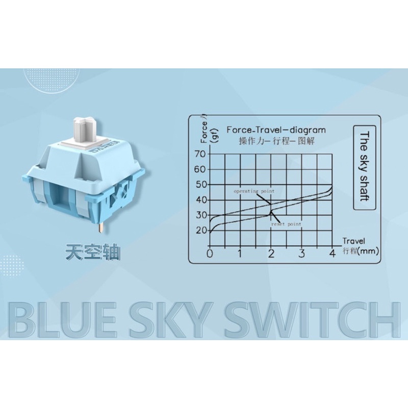 Linear switch màu xanh dương nhạt, stem trắng.