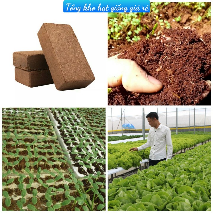 1 viên ngâm vào nước sẽ nở gấp 5 lần. Cho bạn 5 dm3 (Khoảng 4-5 k) giá thể mụn dừa sạch trồng cây