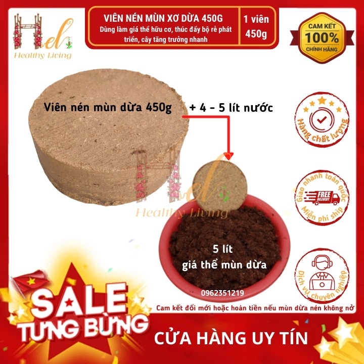 HeLiCorp cam kết hoàn 100% tiền nếu viên nén mùn dừa không nở, quý khách vui lòng quay video và phản hồi tới 0962351219HELICORP phân phối 3 loại mùn xơ dừa nén: 450Gram, 1 Kg, 4.8 - 5Kg, BỊCH MÙN 1KG là sản phẩm mẫu dùng thử, đây là nguyên liệu của bánh nén 5KG